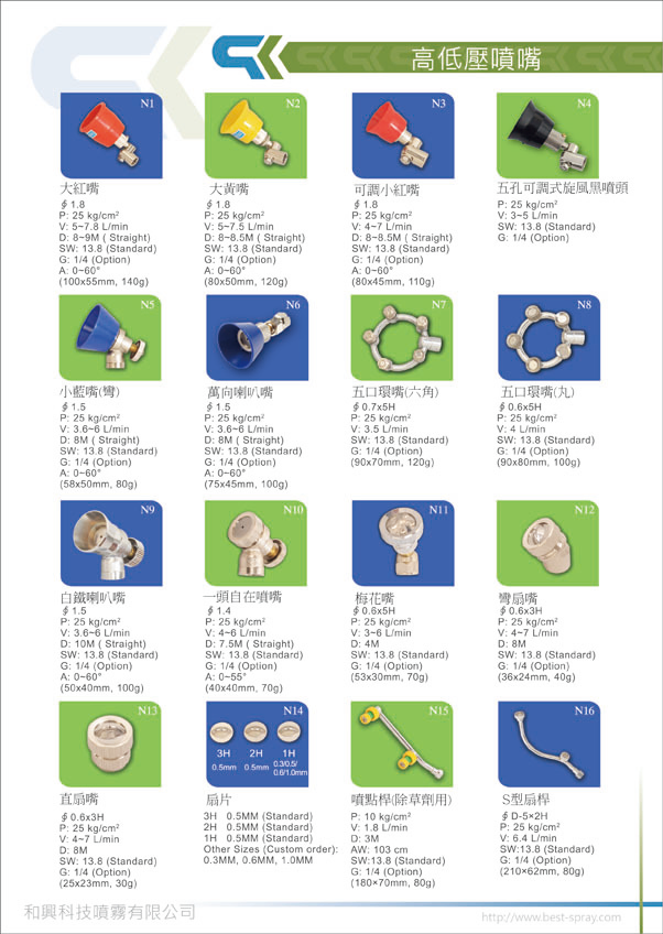 各式噴嘴,大紅嘴,大藍嘴,扇片,噴片,可調扇形洗車噴嘴,萬向喇叭嘴,五孔可調式噴嘴,五孔環型嘴,內芽直嘴,外牙直嘴...等等.